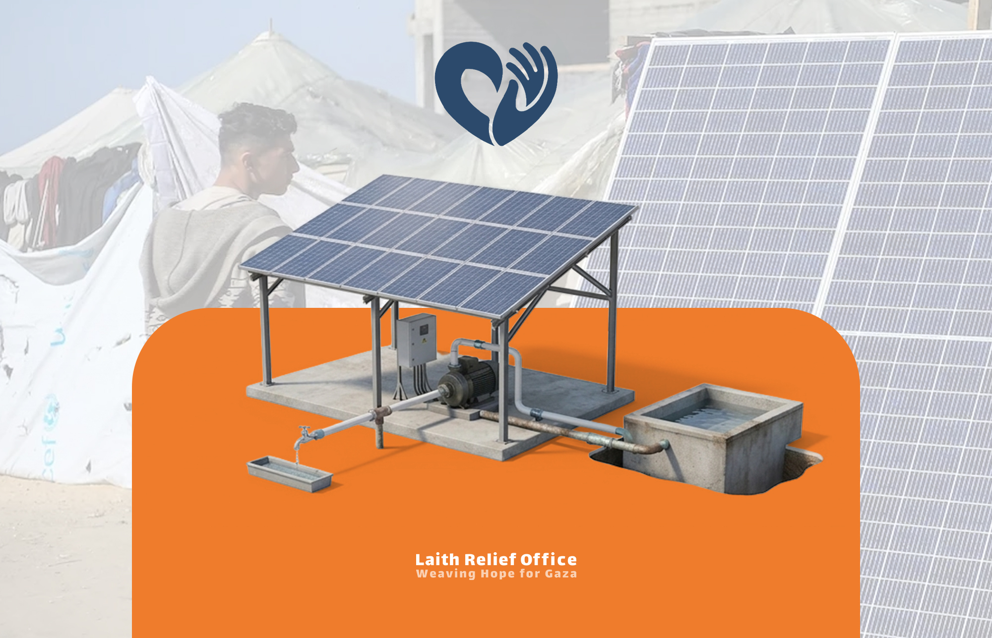 الطاقة الشمسية هي الحل لإعادة الأمل في غزة، من خلال مساهمتك، يمكننا توفير الكهرباء للمنازل والمرافق الأساسية. بدعمكم، نستطيع الاستمرار في توفير الطاقة للمرافق التي يعتمد عليها الناس يوميًا، مساهمتكم في هذا البرنامج تعني استمرار الخدمات الأساسية، وحماية ما تبقى من مقومات الحياة في غزة”